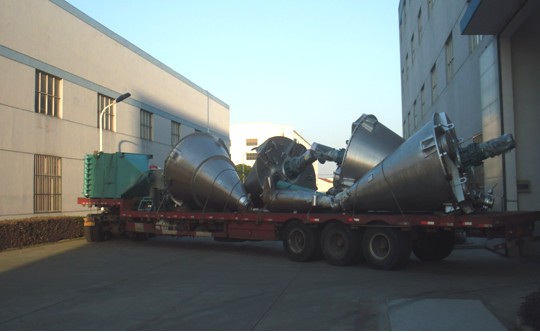 日前,某化学有限公司之前在我公司订购了全自动拉板压滤机、全自动刮刀离心机及热风循环烘箱,在这批设备安装调试过程中,感受到我公司工作人员全方位的技术支持及温心细致的服务后,该公司立刻与我司追加订单,订购了一批全不锈钢双螺旋锥形混合设备及粉碎除尘设备。